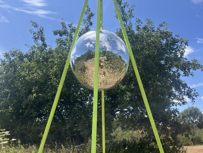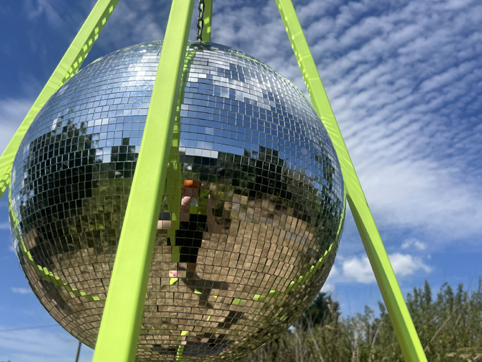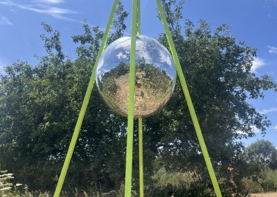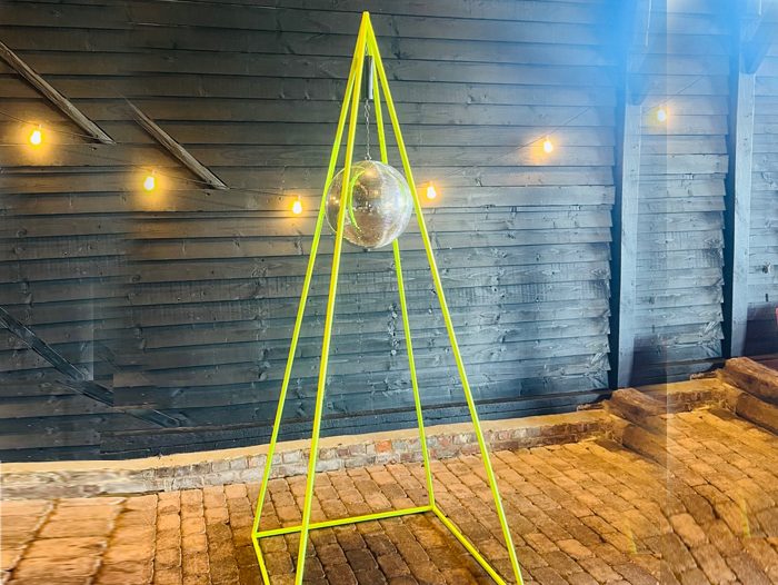 Free standing, no wires needed, disco ball pyramid!